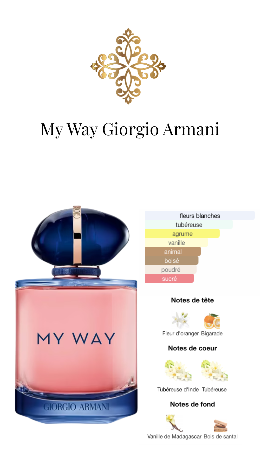 This dupe mirrors My Way’s bright and sophisticated combination of floral and woody notes. It opens with radiant orange blossom and bergamot, adding a fresh and awakening touch to your day. The heart of the fragrance is enriched with the creamy sweetness of tuberose and jasmine, offering a deeply alluring floral bouquet. Rounded off by cedarwood, vanilla, and musk in its base notes, this perfume provides a long-lasting and memorable fragrance trail. Indulge in an experience that feels luxurious and comforting, perfect for every occasion from casual outings to formal evenings.